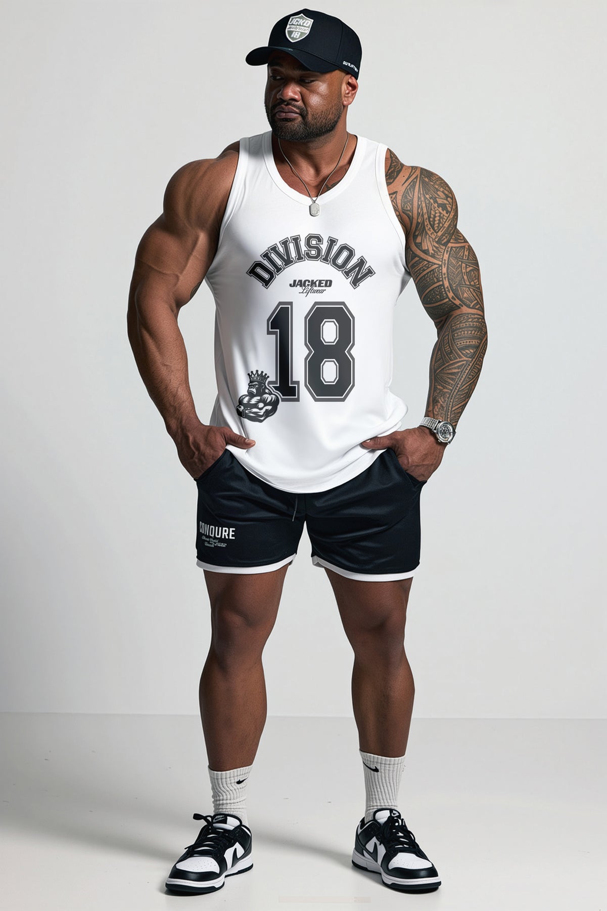 Engineered for lifters who push limits inside and outside the gym, the Division 18 Singlet makes a bold statement. The front showcases our DIVISION 18 graphic, anchored by the crowned Gorilla mascot for undeniable presence. On the back, a sharp JACKED Liftwear logo sits high between the shoulders, delivering a clean, powerful finish that completes the look.