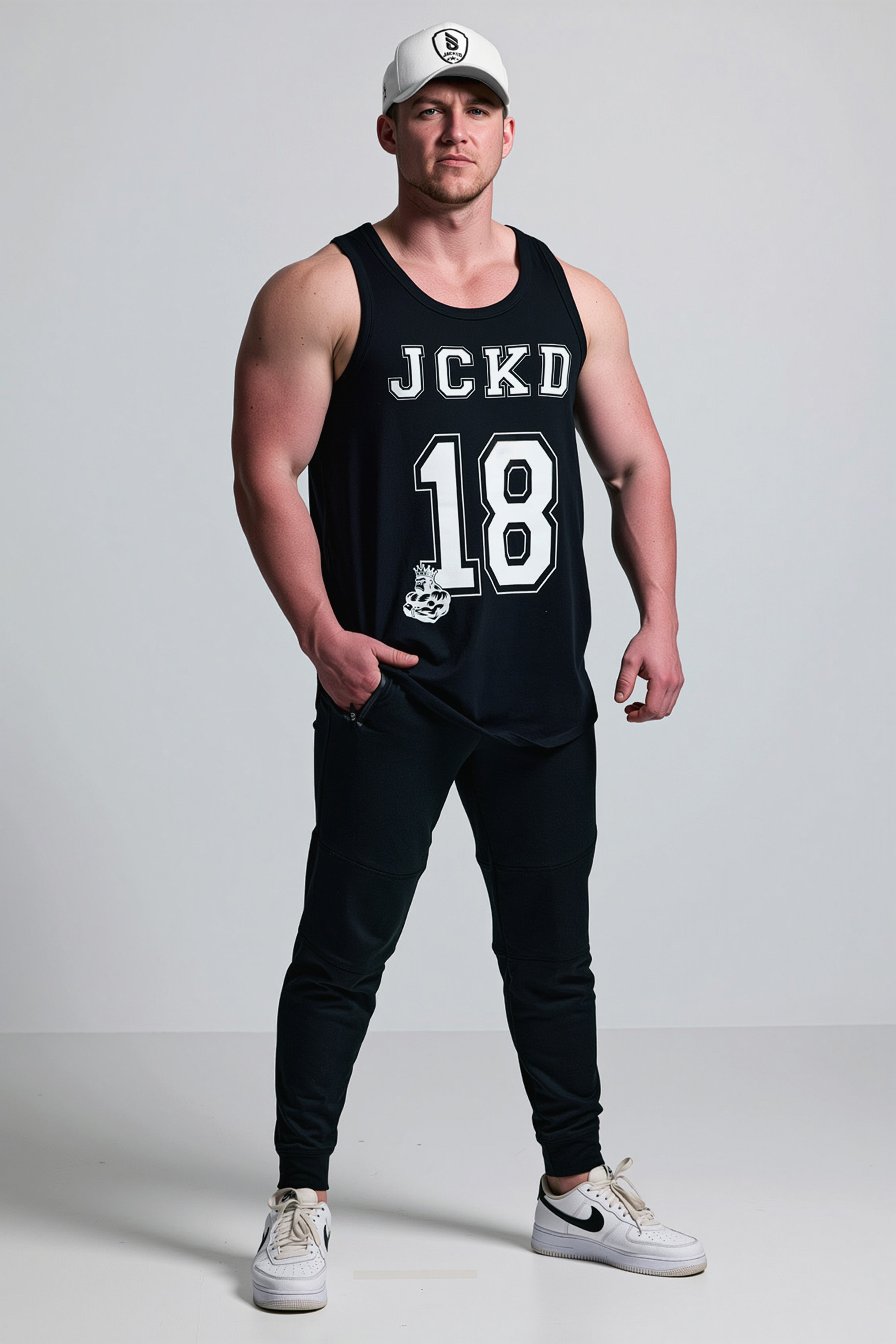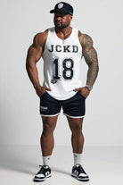 Built for those who train hard and live harder, the JCKD18 KONG Singlet features our iconic Jacked Gorilla mascot front and centre, paired with a stitched JCKD fabric patch for that extra edge. On the back, a clean vertical JCKD logo delivers a sharp, powerful finish.