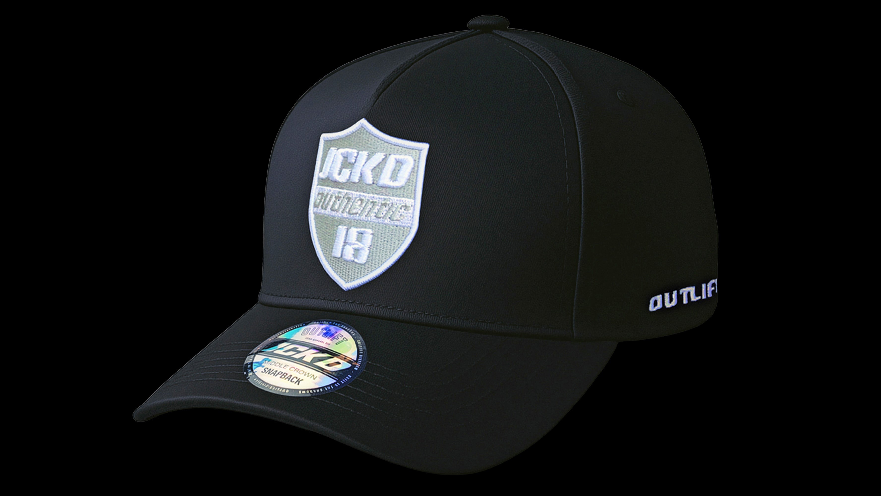 The 9FORTY® A-Frame™ merges two front panels into one clean unit, creating that signature pinched silhouette worn by lifters, legends, and grinders alike. Raised 3D red      J-C-K-D embroidery stitched proudly on the front combined with OUTLIFTDIV embroidered side panels. Rear snapback woven JCKD tag for a dialled-in fit.